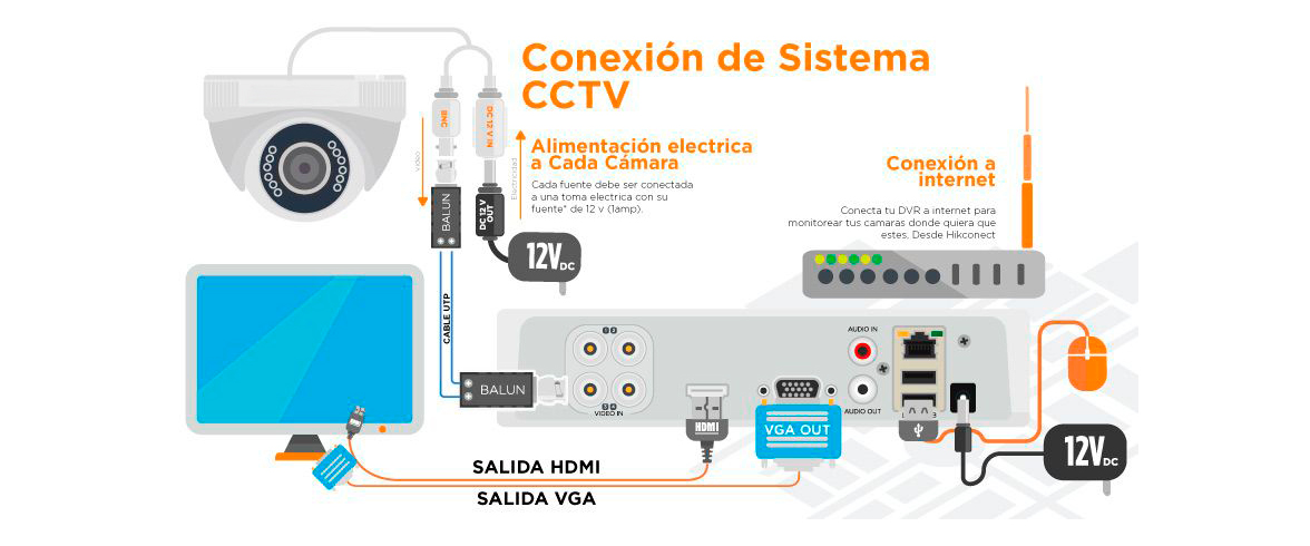 El sistema de CCTV consiste en un conjunto de componentes y tecnologías que permiten la visualización de puntos distantes que incrementan la seguridad un lugar. Es decir, cámaras de seguridad tanto de sistema turbo hd como a través de una conexión a internet (IP).